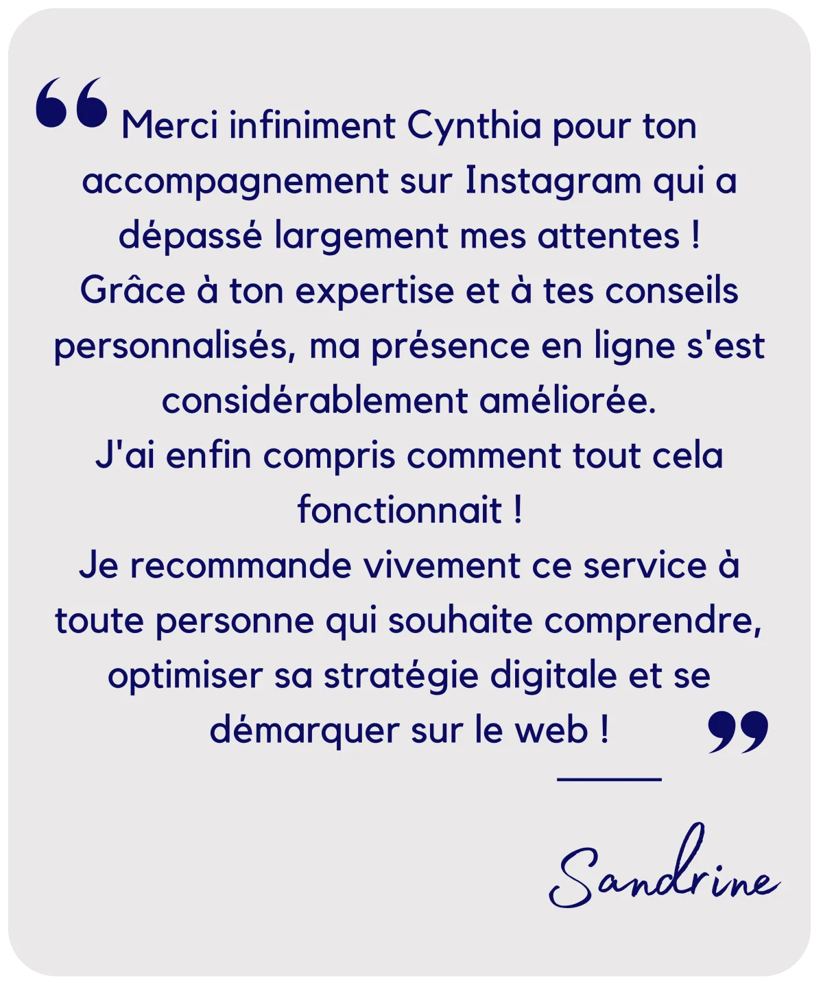 Si tu ne me connais pas, je suis Cynthia, community manager et coach Instagram.